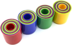 Stapelbecher sind ein klassisches Lernspielzeug, mit dem Kinder die Präzision ihrer Bewegungen trainieren und Größenverhältnisse verstehen. Jeder Becher hat andere Maße und eine andere Farbe – so lässt sich ein hoher Turm bauen oder alles ineinander stecken, um Logik und Geduld zu fördern.