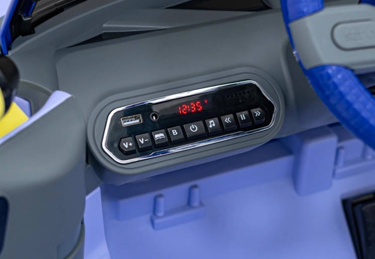 - Audiopanel: Bluetooth, USB, AUX, MP3, vorinstallierte Melodien, Hupe am Lenkrad.