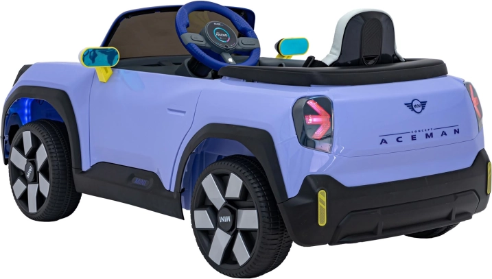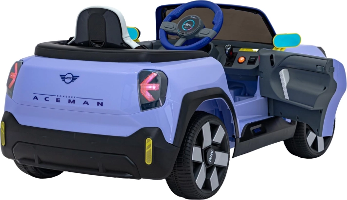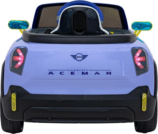 Der MINI Concept Aceman ist ein hochwertiges elektrisches Kinderauto mit Fokus auf Sicherheit, Komfort und Spaß. Realistische Details, öffnende Türen und ein beleuchteter Kühlergrill sorgen für einen Premium-Look, während der tiefe und breite Sitz aus Kunstleder mit MINI-Prägung auch bei längeren Fahrten bequem bleibt.