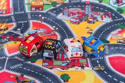 Diese weiche Spielmatte verwandelt das Kinderzimmer in eine lebendige Stadt mit Feuerwehrwache, Straßen und Rettungsszenen. Dank der Filzausführung ist sie angenehm anzufassen und auch für die Kleinsten sicher. Im Set enthalten sind vier Plüschfahrzeuge – Feuerwehrauto, Krankenwagen, Polizei und Bus – bereit für tägliche Abenteuer.