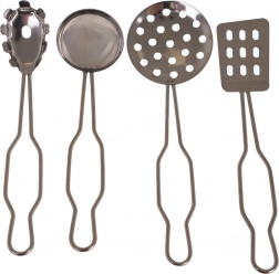 Enthalten sind außerdem Zange, Schöpflöffel, Wender und Schaumlöffel – alles, was Kinder zum Kochen und Servieren brauchen.