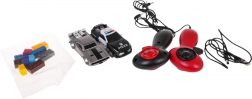 - Konstruktions-Teile der Strecke, .- 10 Bausteine, .- 2 Fahrzeuge, .- 2 Fernbedienungen, - USB-Netzadapterkabel . |