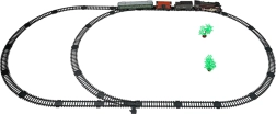 - Lokomotive, Personenwagen, Kohlenwagen, Tierwaggon, Schienenteile, USB-Ladekabel, Schraubendreher, Pipette für Wasser