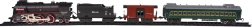 - Dampf/Rauch nach Befüllen mit Wasser, Vorwärts-/Rückwärtsfahrt/Stopp, Frontscheinwerfer, Fahrgeräusche mit Ausschaltmöglichkeit