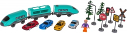 Das Komplettset mit Schienen, Bahnhof, Brücke, Tunnel und Zubehör ermöglicht immer neue Streckenvarianten und Spielszenarien.