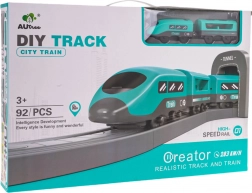 Im Paket findest du alles für eine komplette Szene: Schienen, Brücke, Tunnel, Papp-Supermarkt, Verkehrsschilder, Bäume, 4 Autos, eine Figur und eine Lampe. Dank der 92 Elemente kannst du die Anordnung beliebig verändern und immer neue Strecken gestalten.