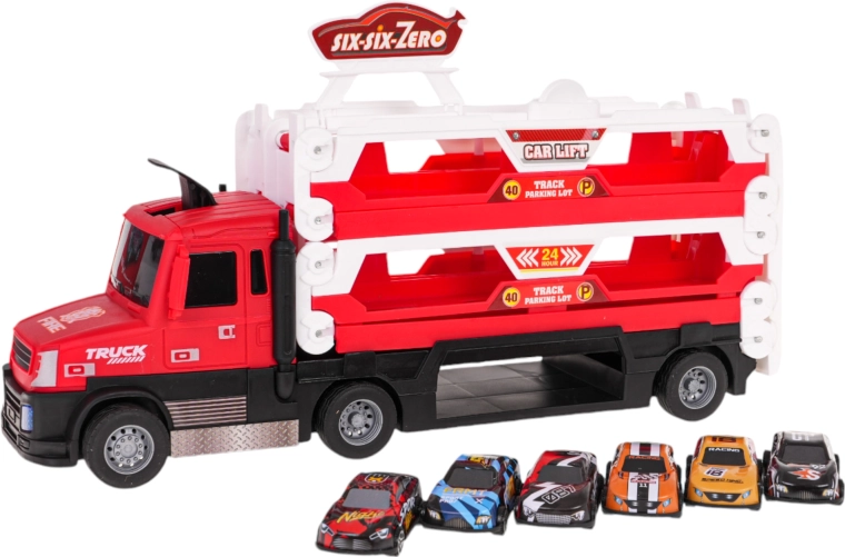 Dieser interaktive 2-in-1-Transporttruck begeistert alle kleinen Rennfahrer. Drei Etagen bieten reichlich Platz zur Aufbewahrung der Autos und bilden ausgeklappt eine lange Strecke, auf der die Autos dank der integrierten Katapult-Abschussvorrichtung dahinrasen. Die robuste Konstruktion in lebhaften Farben und Gummireifen sorgen für komfortables Handling und Stabilität.
