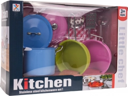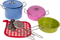 Machen Sie das Kochen mit diesem bunten Set an Küchenutensilien zum Vergnügen! Geeignet für Kinder ab 3 Jahren, das Metallgeschirr kommt in attraktiven Farben zum Kochen lernen oder als Spiel.