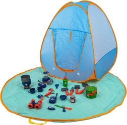 Zelt und Zubehör sind aus hochwertigen Materialien gefertigt, die Sicherheit und Langlebigkeit gewährleisten. Kurzwellradios, Campinglampe, Campingkocher mit realistischen Geräuschen und Lichtern erhöhen den Spaß beim Rollenspiel.