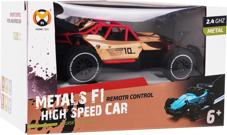 Goldenes Metallauto mit Fernsteuerung ist für Kinder ab 6 Jahren konzipiert, die Nervenkitzel bei schnellen Fahrten erleben möchten. Das Modell im Maßstab 1:20 und seine Gummireifen sorgen für hervorragenden Grip auf der Oberfläche. Die Metallkarosserie gewährleistet hohe Haltbarkeit, was es zum idealen Spielzeug für aktive Kinder macht.