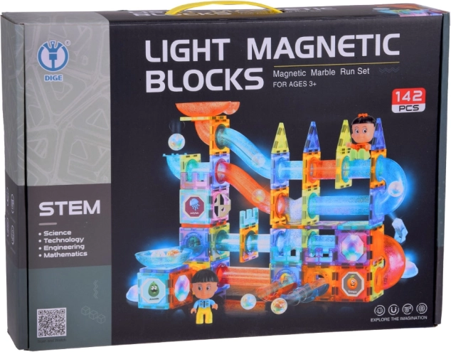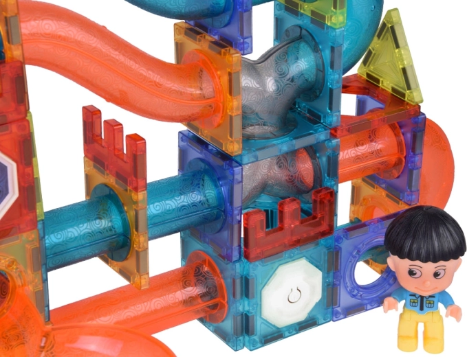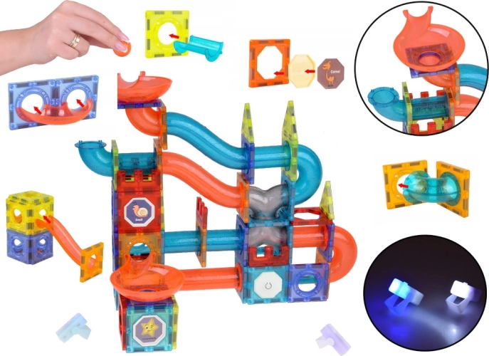 Leuchtende magnetische Bausteine – 142 Elemente zum Bau einer Kugelbahn sind ideal für jeden jungen Baumeister.