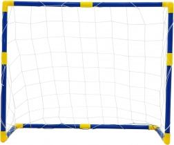 Die blauen Rohre mit gelben Verbindern lassen sich leicht ineinanderstecken und ergeben einen stabilen Rahmen. Das Netz ist fest um die Konstruktion befestigt, sodass Sie das Tor im Handumdrehen aufbauen und versetzen können.