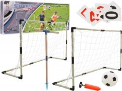 Set aus zwei Fußballtoren mit Spielstandtafel und Zubehör