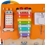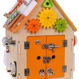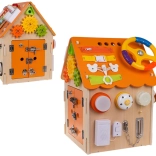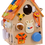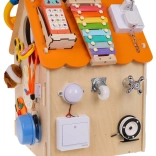 Das Häuschen verfügt über eine LED-Beleuchtung, die unter dem Dach verborgen ist. Einzelne Elemente wie Klingeln, Spieluhr und Telefon haben Soundfunktionen. Die interaktiven Funktionen werden mit 7 AAA 1,5-V-Batterien betrieben (im Lieferumfang enthalten). Das Spielen mit dem Häuschen fördert die ganzheitliche Entwicklung der Kinder und lehrt sie den Umgang mit Alltagsgegenständen.