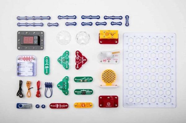 Zum Lieferumfang gehören Elemente wie ein Flugzeug, ein Mini-Auto, ein Lautsprecher, ein Bewegungsmelder und ein Motor mit Getriebe. Mit den vorhandenen Teilen erstellen Sie nicht nur über 200 Projekte, sondern auch hunderte eigene. Alles ist mit anderen BOFFIN-Bausätzen kompatibel, sodass Sie Bauteile und Ideen setsübergreifend kombinieren können.
