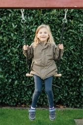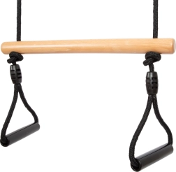Diese Trapezschaukel kombiniert das traditionelle Schaukelgefühl mit der Möglichkeit von Gymnastikübungen. Ihr innovatives Design bietet mehr Bewegungsmöglichkeiten und Freude. Die Schaukelstange kann als Sitz oder Gymnastikstange verwendet werden, während die Gymnastikgriffe kleinen Akrobaten ermöglichen, neue Bewegungsmöglichkeiten zu entdecken. Geeignet für Anfänger und Fortgeschrittene.