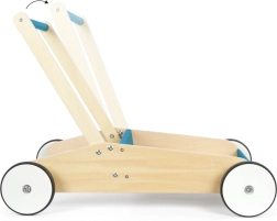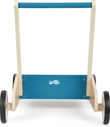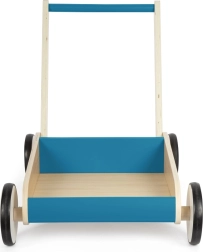 Stabiler und stilvoller Lauflernwagen aus Naturholz in Petrolblau unterstützt die ersten Schritte mit Sicherheit und Freude. Er bietet integriertes Bremssystem, gummierte, leise Räder, höhenverstellbaren Griff und großen Stauraum für Lieblingsspielzeug.