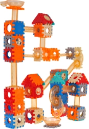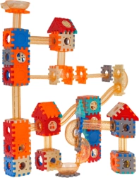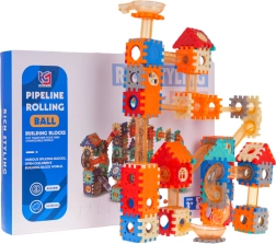 Die Bausteine bestehen aus hochwertigem Kunststoff in lebendigen Farben, die die Aufmerksamkeit auf sich ziehen. Nach dem Aufbau einfach eine Kugel in den oberen Trichter werfen und zusehen, wie sie die Bahn entlang rollt – das ist nicht nur unterhaltsam, sondern auch entspannend. Ebenfalls enthalten sind dekorative Aufkleber zur Personalisierung der Bauten.