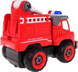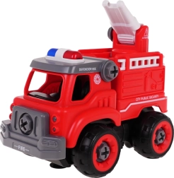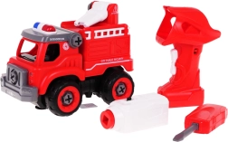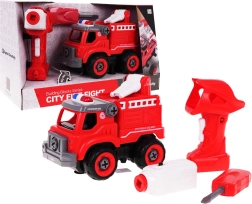 Dieses zerlegbare Feuerwehrfahrzeug verbindet spannenden Bauspaß mit actionreichem Spielen. Mit dem mitgelieferten Schraubendreher und dem batteriebetriebenen Bohrer können kleine Techniker einzelne Teile montieren und dabei Feinmotorik und Vorstellungskraft fördern. Nach Einsetzen des Steuerpanels kann das Auto selbstständig vorwärts oder rückwärts fahren oder wie ein RC‑Fahrzeug gesteuert werden.