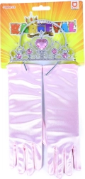 Prinzessinnen-Set rosa Handschuhe und Krone