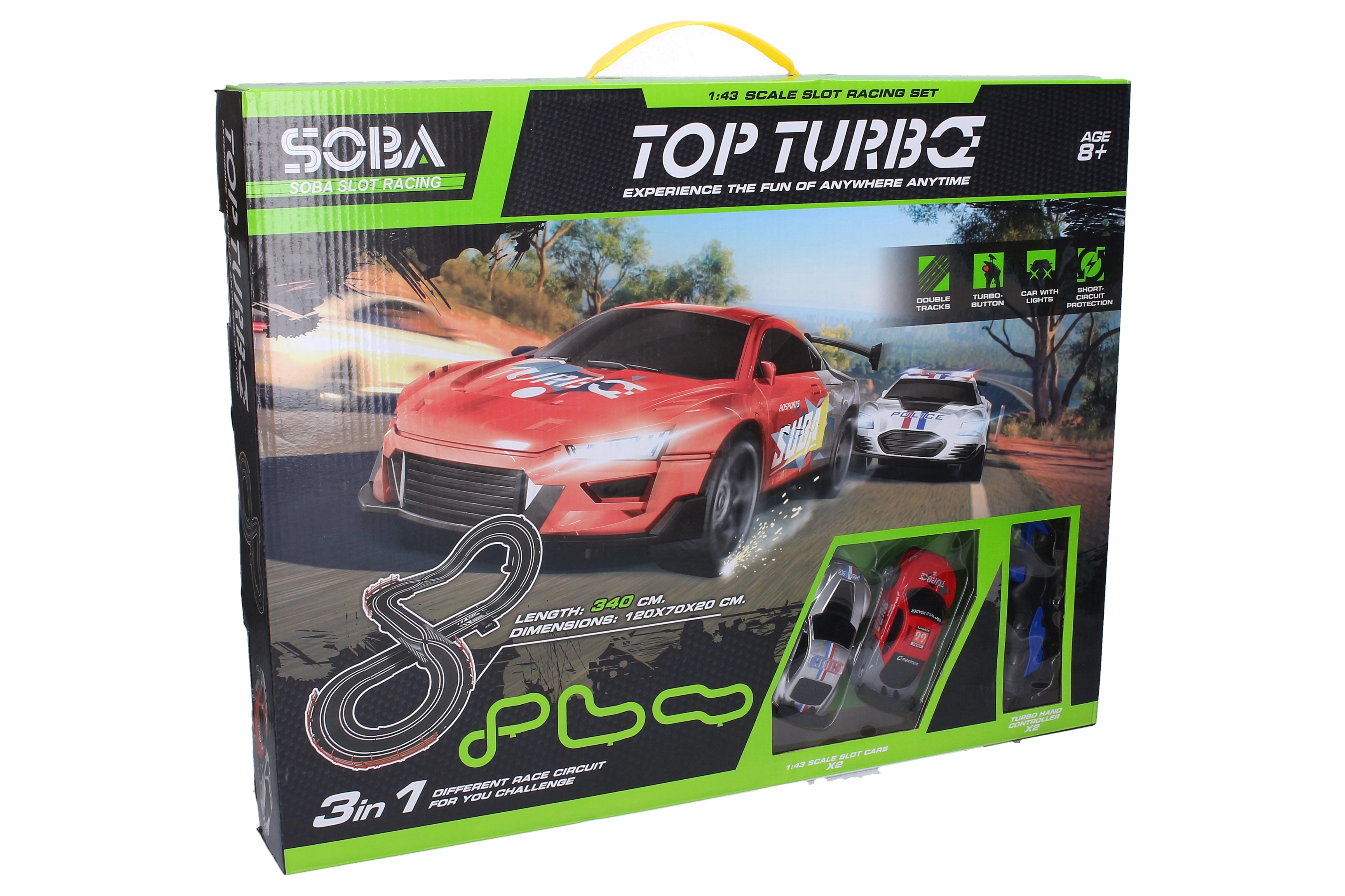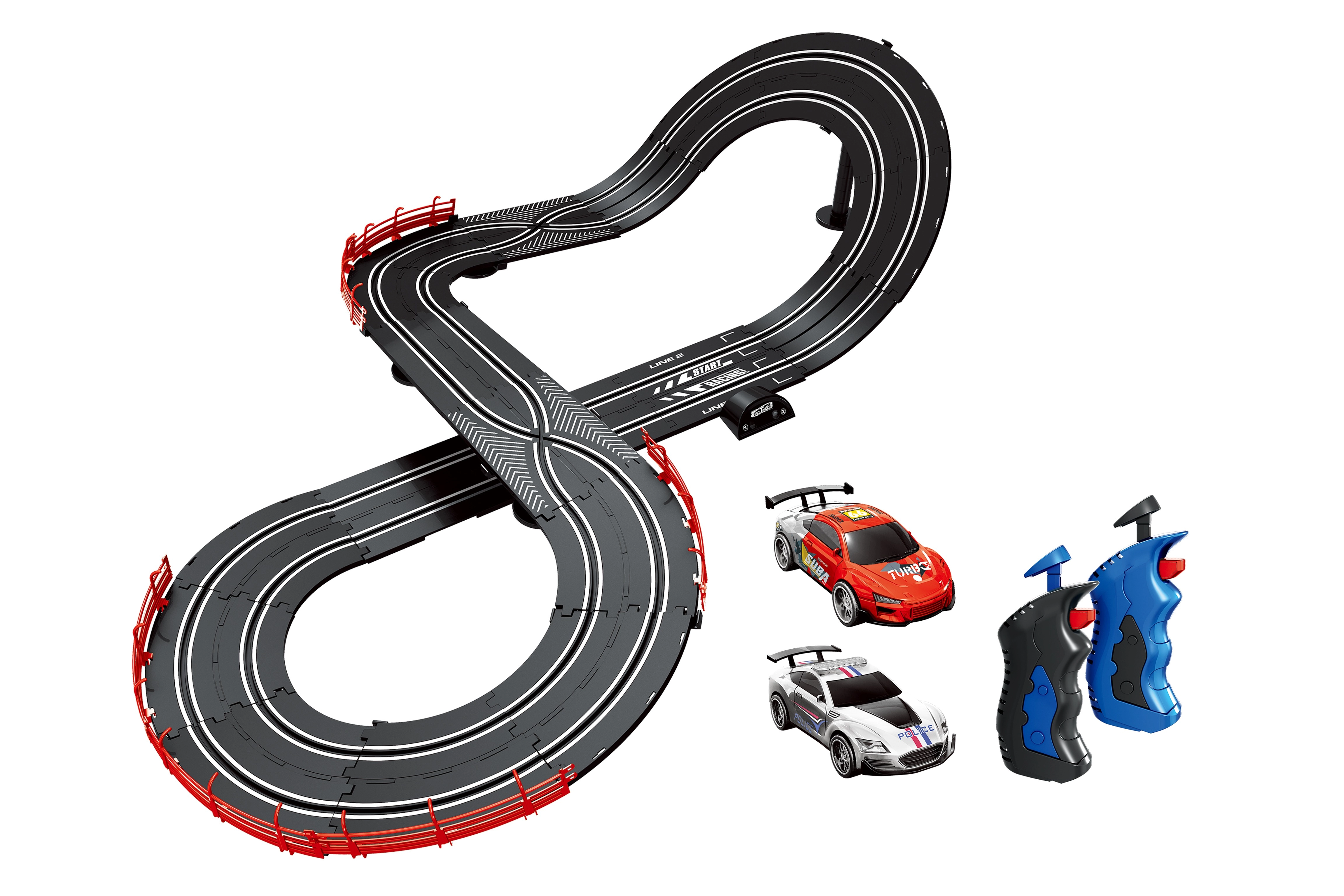 Die Strecke lässt sich auf 3 verschiedene Arten aufbauen, sodass Sie den Spaß leicht anpassen können. Die Stromversorgung über ein 12-V-Netzteil bietet konstante Leistung ohne Batterien. Großartig als Geschenk und perfekt für Familienrennen.