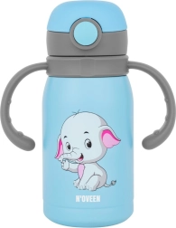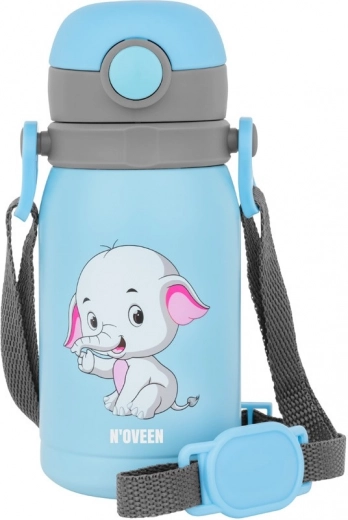 Praktische Kinder-Trinkflasche mit einem Volumen von 300 ml in blauer Farbe mit Elefantenmotiv, ideal für heiße und kalte Getränke. Dank des speziellen Griffs lässt sie sich leicht transportieren und auch Kinder trinken bequem daraus.