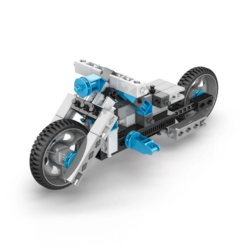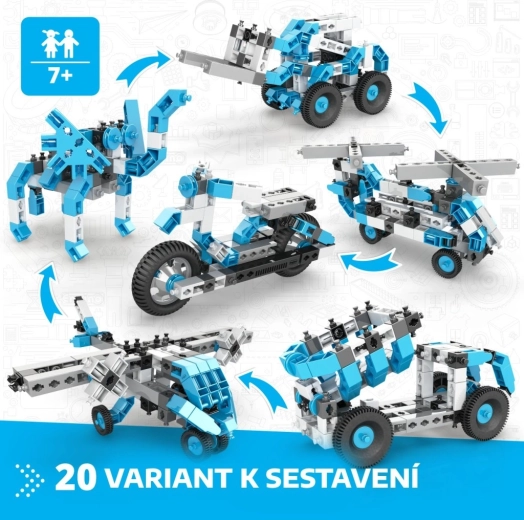 Vom Motorrad und Flugzeug bis zum Radlader, zu Robotern und Tieren – Kinder bauen 20 verschiedene Projekte und können sie jederzeit leicht umbauen.