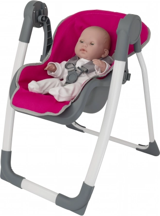 Der Chicco Puppenstuhl 3-in-1 ist ein multifunktionales Zubehör, das als Schaukelstuhl, Autositz und klassischer Hochstuhl für Puppen bis zu einer Größe von 43 cm dient.