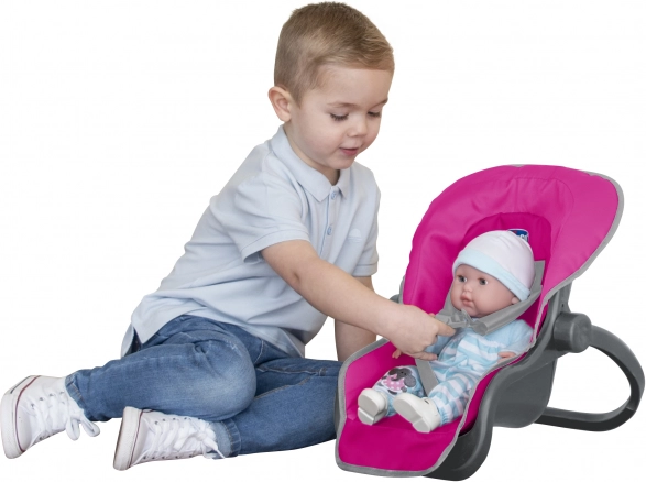 Der multifunktionale Chicco Puppenstuhl 3-in-1 dient als Schaukelstuhl, Autositz und Hochstuhl.