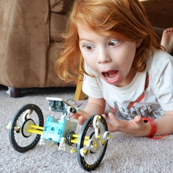 Dieses kreative Set fördert logisches Denken, Geduld und technische Fähigkeiten. Mithilfe des Solarpanels und der Getriebe bauen Kinder bewegliche Modelle – vom Roboter mit tierischer Gangart bis hin zu gleitenden Booten oder Surfern. Ohne Batterien, nur mit Sonne – eine großartige Möglichkeit, spielerisch erneuerbare Energien kennenzulernen.