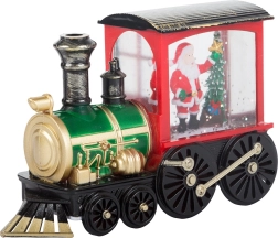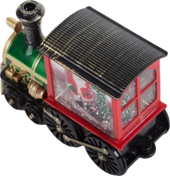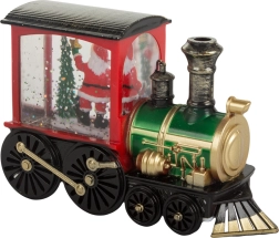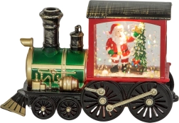 Diese schöne Weihnachtslaterne verleiht jedem Raum eine warmes und festliches Ambiente. Sie ist in Form einer Lokomotive gestaltet, im Inneren befindet sich ein Weihnachtsmann mit Baum, sanft beleuchtet durch LED-Lichter. Die Glitzer im Inneren erzeugen die Illusion von fallendem Schnee, der im Licht funkelt und der gesamten Dekoration ein einzigartiges Aussehen verleiht.