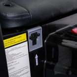 Für Sicherheit und Komfort stehen eine 2,4-GHz-Fernbedienung mit Not-Stopp, breite Sitze aus Eko-Leder und große Räder mit markantem Profil bereit. Kinder genießen die Fahrt mit LED-Lichtern und der umfangreichen Ausstattung des Audio-Panels – MP3, USB, Bluetooth, integrierte Melodien und Sounds im Lenkrad.