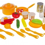Pfanne, Topf, Teller, Besteck, Gewürze und Lebensmittelattrappen – alles sorgfältig aufeinander abgestimmt für viele Stunden kreativen Spielspaß.