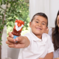 Der Kinderstempel mit Füchschen-Motiv erstellt Aufkleber, die sofort im Aktivitätsheft verwendet werden können. Kein Klebstoff, keine Unordnung – nur purer Spaß.
