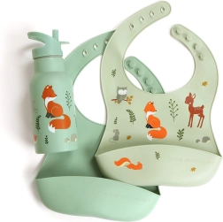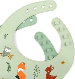 2× Silikon-Lätzchen (1× mit Waldtier-Motiv, 1× einfarbig)