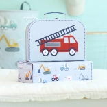 Entdecken Sie das praktische und schöne Set aus zwei Kartonkoffern von A Little Lovely Company mit attraktivem Fahrzeugmotiv. Dank der soliden Verarbeitung und durchdachten Details passt es perfekt ins Kinderzimmer und auf Reisen.
