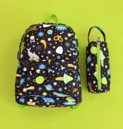 Dieses stylische Mäppchen mit Raketen, Planeten und Sternen ist für den täglichen Gebrauch konzipiert. Dank des strapazierfähigen und nachhaltigen Polyesters meistert es den Schulalltag und Reisen, während das Futter den Inhalt schützt und der Reißverschluss alles zuverlässig verschließt.