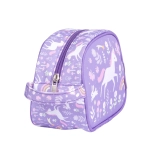 Diese niedliche rosa Kulturtasche mit Einhörnern und Regenbogen hält alle Hygieneartikel der Kinder ordentlich zusammen. Dank des geräumigen Hauptfachs passen Shampoo, Seife, Zahnbürste, Zahnpasta und weitere Kleinigkeiten hinein. Die praktische Schlaufe ermöglicht bequemes Tragen oder Aufhängen.