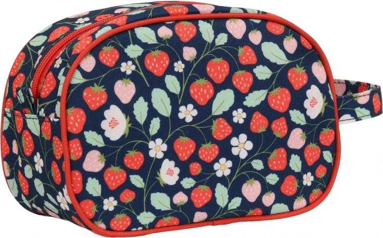 Diese Kinder-Kulturtasche von A Little Lovely Company überzeugt mit einem verspielten Erdbeerdesign auf dunkelblauem Hintergrund und einem zuverlässigen Reißverschluss. Dank der kompakten Maße passt sie leicht in Rucksack oder Koffer und hält alle Hygieneartikel ordentlich zusammen.