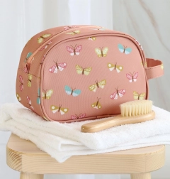 Der stylische Kulturbeutel von A Little Lovely Company mit niedlichen Schmetterlingen begeistert jedes Kind. Dank der kompakten Maße passt er leicht in den Rucksack oder die Reisetasche und bietet dennoch genügend Platz für Shampoo, Seife, Zahnbürste und Zahnpasta.