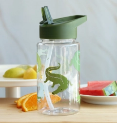 Diese stylische Trinkflasche mit Krokodilmotiv hilft Kindern, ausreichend zu trinken. Dank des sicheren Verschlusses und des Trinkhalms ist das Trinken bequem und die Flasche bleibt auslaufsicher. Die transparenten Wände erleichtern die Kontrolle der Füllmenge, und die kompakten Abmessungen passen in jeden Kinder-Rucksack.