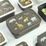 Diese praktische Lunchbox mit Savannen-Tiermotiv begeistert Kinder und Eltern. Dank des zuverlässigen Klickdeckels bleibt der Inhalt sicher verstaut und länger frisch. Der herausnehmbare Einsatz mit zwei Fächern ermöglicht es, Obst, Sandwiches oder Snacks unkompliziert zu trennen.