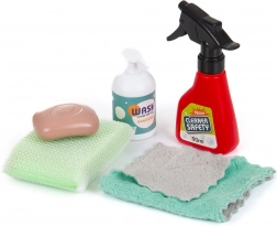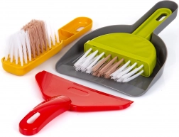 Enthalten ist alles, was ein Kind zum Aufräumen braucht – vom Besen und Handfeger mit Kehrschaufel über Tücher und Sprühflasche bis zum Warnschild. Die Wagenmaße 71 × 31 × 33,5 cm gewährleisten eine bequeme Bedienung auch für jüngere Kinder. Das Spielzeug wird gemäß europäischen Sicherheitsnormen hergestellt.