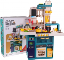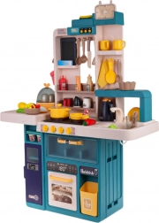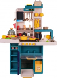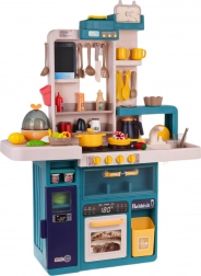 Die Kinderküche ist aus hochwertigem Kunststoff gefertigt und in lebendigen Farben erhältlich, die die Kreativität der Kinder fördern. Sie verfügt über ein interaktives Kochfeld mit Drehknöpfen, die Kochgeräusche und Bratgeräusche erzeugen und bei Gebrauch die Brenner beleuchten. Enthalten sind auch die Simulation von kaltem Dampf und fließendem Wasser aus dem Wasserhahn zum Geschirrspülen.