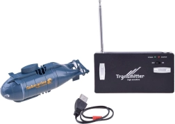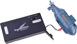 Zuverlässige 49-MHz-Frequenz für stabile Reichweite. Der Sender fungiert auch als Ladegerät – einfach das Kabel an der Vorderseite des U-Boots anschließen.