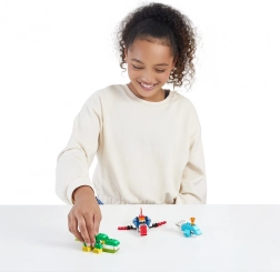 Dank der Vielzahl an bunten Teilen und Spezialkomponenten wie Flammen oder Rädern unterstützt der Bausatz die Entwicklung der Feinmotorik und Kreativität.