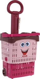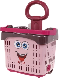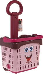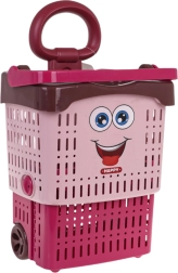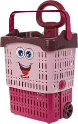 Dieser rosa Einkaufswagen hat ein verspieltes Design mit einem fröhlichen Gesicht und ist ideal für die Entwicklung von Kreativität und sozialer Interaktion.