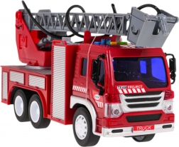 Interaktives Feuerwehrauto mit Licht- und Soundfunktion sowie Wasserbesprühung für Kinder ab 3 Jahren. Das Feuerwehrauto ist aus hochwertigsten Materialien in leuchtenden Farben gefertigt. Es verfügt über bewegliche Elemente wie eine verstellbare Leiter, die nach oben und unten bewegt sowie ausgezogen und verkürzt werden kann. Am Ende der Leiter befindet sich eine Plattform mit dem Anschluss des Feuerwehrschlauchs, aus dem Wasser fließt. Am vorderen Teil des Anhängers ist ein Wassertank angebracht. Sobald der Tank mit Wasser gefüllt ist, genügt es, die Taste an der Oberseite des Tanks zu drücken und das Wasser beginnt zu fließen. Auf dem Dach der Fahrerkabine befinden sich Tasten, die beim Drücken das Geräusch einer Sirene, einer Hupe oder eines Fahrzeugschusses wiedergeben. Die Geräusche werden von blinkenden Lichtern des Feuerwehrbalkens begleitet. Das Fahrzeug hat Gummireifen und einen Reibungsantrieb auf der Vorderachse. Es wird mit AG13-Batterien betrieben (im Lieferumfang enthalten). .. Funktionen des Fahrzeugs: . - geeignet für Kinder ab 3 Jahren, .- hergestellt aus sehr hochwertigen Materialien, .- Maßstab 1:16, .- bewegliche Elemente: Leiter auszieh- und absenkbar, ausfahrbar und verkürzbar, .- Kranarm um 360 Grad drehbar, .- Wasser spritzt aus dem Feuerwehrschlauch, .- Reibungsantrieb der Vorderräder, .- Gummireifen, .- Lichteffekte: blinkende Lichter auf dem Fahrzeugdach, .- Soundeffekte: Sirenensignal, Hupe oder Schussgeräusch des Fahrzeugs. . |