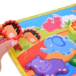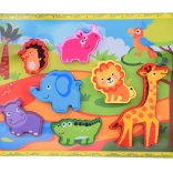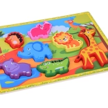 Dieses Puzzle regt Kinder zum Spielen an und lehrt sie die Namen exotischer Tiere.