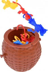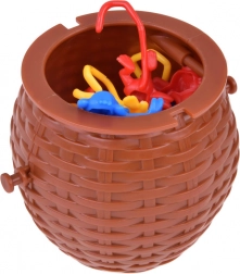 Der Kunststoffkorb mit Deckel eignet sich nicht nur für das Spiel, sondern auch als Aufbewahrungsplatz für die Affen nach dem Spiel.